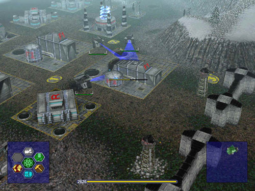 vehicle types adds another layer of strategy to the game. Graphics: The use of 3-D adds something beyond cosmetics. The total polygon landscape gives everything a more solid, realistic texture. And not only is the terrain 3D, so are the objects, structures, and vehicles. The effects for explosions, fire and projectiles are superb and lead to great fire-fights. The mountains and valleys are also true-to-life. Extrapolated geography adds some engaging tactics of ground